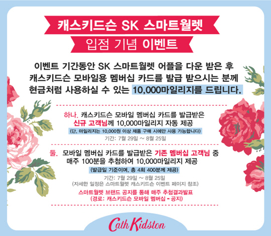 런던 라이프 스타일 브랜드 캐스 키드슨이 SK플래닛의 모바일 지갑 서비스인 '스마트월렛' 입점 기념 이벤트를 실시한다.