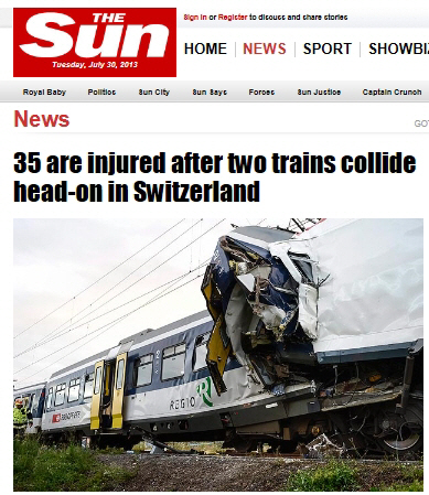 스위스에서 열차가 충돌해 수십명이 다치는 사고가 발생했다.