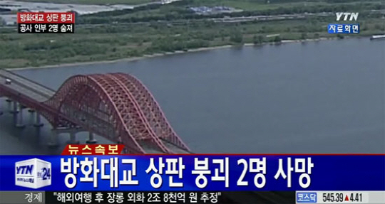 서울 방화대교 공사장에서 상판이 무너져 일하던 근로자 2명이 숨졌다.