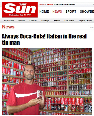 25년간 코카콜라 캔을 1만개 이상 수집한 30대 남성의 사연이 공개돼 화제다.