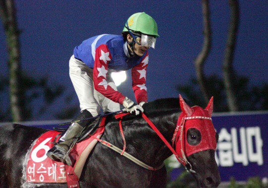 ◇부산경마공원을 대표하는 명마 '연승대로'가 은퇴하고, 씨수말로 데뷔한다. 부산광역시장배 우승 모습.