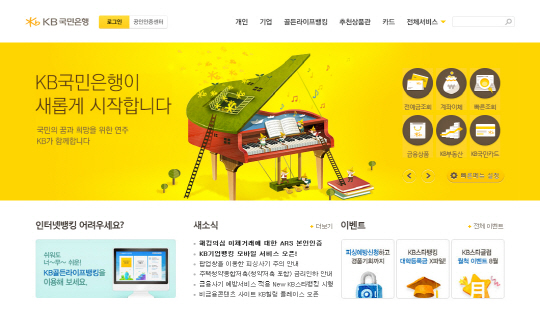 KB국민은행(www.kbstar.com)이 고객맞춤 Concept의 홈페이지를 새롭게 오픈했다. 고객 맞춤형 홈페이지는 그 동안 축적된 방대한 양의 고객행태분석, 이용자의 사용성 평가와 철저한 검증을 거쳐 개인 맞춤형 정보제공 및 영업점수준의 금융서비스를 제공한다고 밝혔다.