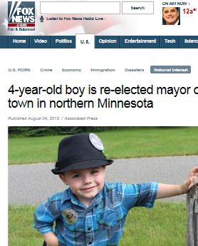 폭스뉴스 등 외신들은 미국 미네소타주 도셋 마을에 사는 로버트 터프츠군(4)이 시장에 재선됐다고 4일(현지시간) 전했다.