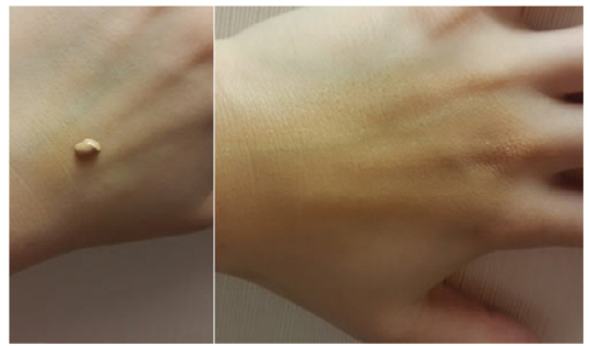 이씨는 엄지손가락을 높이 치켜들었다. "손으로 얼굴에 슥슥 바르면 스며드는 발림성이 최고"라고 소감을 밝힌 이씨는 "쫀쫀한 제형인데 뭉치거나 하지 않고 부드럽게 발린다. 특히 신기한 건 처음에는 촉촉하게 발리다가 시간이 지나면 살짝 매트한 느낌으로 착 피부에 붙어 있다"고 사용소감을 밝혔다.