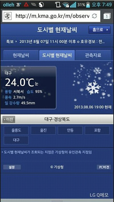 하지만 실제로 대구에는 천둥 번개 우박을 동반한 소나기가 한차례 내렸을 뿐 눈은 오지 않았다. 기상청이 날씨 정보를 입력하는 과정에서 오류가 생긴 것.