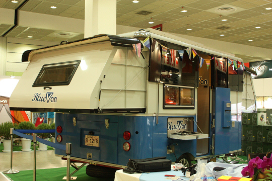 "국내주차여건이나 도로사정 등을 감안하면 마땅한 제품을 찾기가 어렵고, 디자인이나 기능면에서 차별화된 제품이 많지 않은 국내 캠핑카 시장에서, 도로 위에서는 차와 같은 디자인으로 개성을 표현하고 캠핑장에서는 본인의 취향에 맞게 때로는 해변의 카페가 되고, 숲 속의 영화관이 되고, 별을 관측하는 이동식 천문대가 될 수 있는 캠핑트레일러를 만들자는 컨셉트로 'BlueVan'이 탄생하게 되었습니다"라고 밝힌 강 대표는 BlueVan(블루벤)은 한마디로 한국형 'Stylish Camping Trailer'로 소개했다.