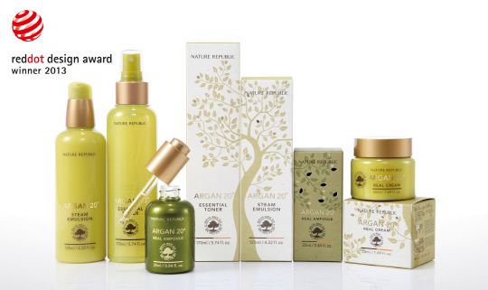 청정 자연에서 온 뷰티에너지를 전하는 화장품 브랜드 네이처리퍼블릭(대표 정운호)은 세계적으로 권위있는 디자인 공모전인 독일 '레드닷 디자인 어워드(Red Dot Design Award) 2013'에서 '아르간 20º' 라인을 포함한 4개 제품이 디자인 부문 본상을 수상했다고 밝혔다.