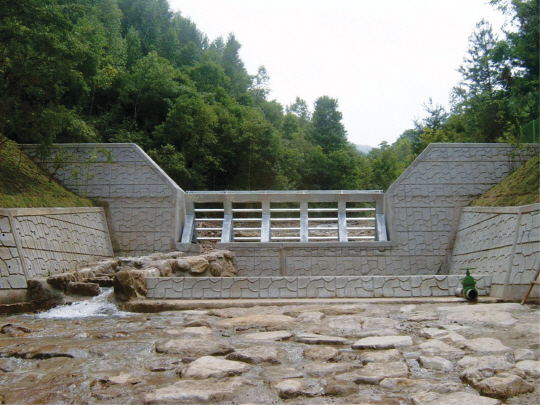 니스코이앤씨(주)(대표이사 단윤배)의 사방댐은, 콘크리트로만 제작되는 타 업체들의 구조물과는 다르게 일정 높이까지는 콘크리트로 시공해 토사를 저지하고, 그 상단부에는 H빔을 시공해 전석과 유목의 월류를 차단하는 기능을 동시에 갖추고 있어 특히 큰 인기를 얻고 있다.