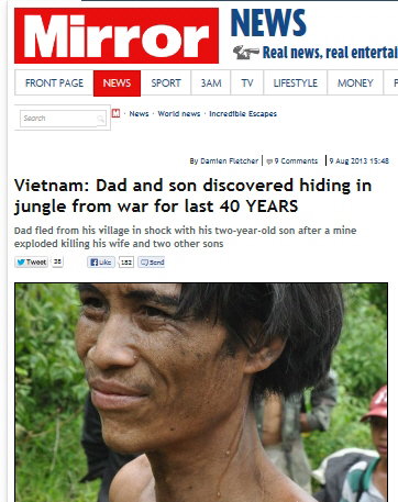 베트남전 당시 정글로 도망간 아버지와 아들이 40년만에 발견돼 화제다.