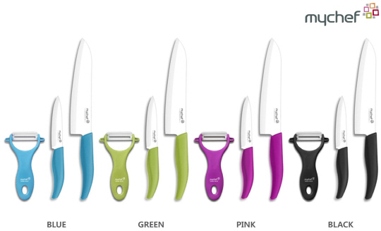 마이셰프 세라믹 식도 세트는 핑크, 그린, 블루, 블랙 4가지 컬러의 세라믹 식도, 과도, 필러로 구성됐다. 출시된 제품은 내식성과 항균력이 뛰어난 세라믹 특유의 장점과 화사한 컬러, 그리고 사용자의 편의성을 극대화 시킨 인체공학적 디자인이 특징이다. 또 식도와 필러는 그립감이 좋고 무게도 가벼워, 장시간 사용해도 손목에 무리가 가지 않아 요리에 서툰 초보 주부들도 쉽고 편하게 사용 가능하다.