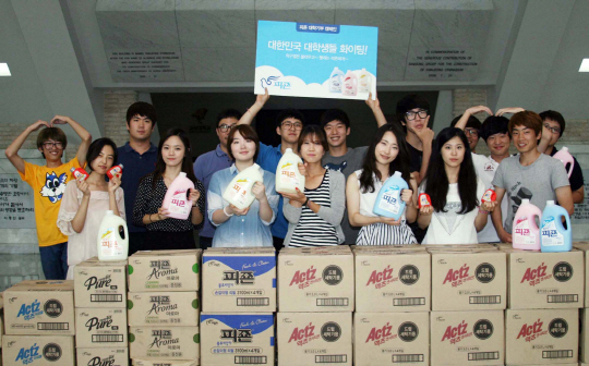 피죤이 이번에 고려대에 기부한 물품은 국내 최초 액체세제 '액츠 드럼용', 최근 향 함량을 20% 강화해 리뉴얼 출시한 섬유유연제 '피죤 블루 비앙카', '피죤 옐로우 미모사', '피죤 핑크 로즈', 주방 세제 '뉴크린 알로에', '퓨어 라임' 등 총 8 종이다.