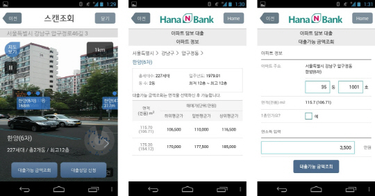 하나은행(은행장 김종준, www.hanabank.com)은 스마트폰 뱅킹 애플리케이션 서비스인 '하나N 뱅크'에 'AR(증강현실, Augmented Reality)을 통한 아파트담보대출'과 '금융위젯' 서비스를 안드로이드 OS기반 스마트폰을 대상으로 신규 오픈했다고 밝혔다.