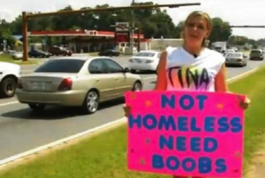 그녀는 언론과의 인터뷰에서 "나는 음식이나 술을 구입하기 위해서가 아니라 단지 좀 더 큰 가슴을 원해서 피켓을 들었다"며 "이렇게 해서 돈을 모으는 것이 가장 좋은 방법일 것이라 생각했다"고 말했다. 이어 "대부분 운전자들이 비웃지만 가끔은 약간의 돈을 주기도 한다"고 덧붙였다.