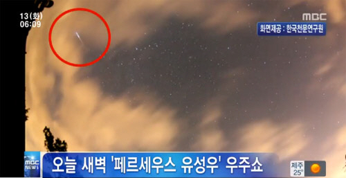 페르세우스자리 유성우로 불이는 이번 별똥별 우주쇼는 우리나라에서는 13일 새벽 4시를 전후해 절정에 달했으나, 당초 기대됐던 시간당 100개의 유성에는 미치지 못했다고 한국천문연구원은 밝혔다.
