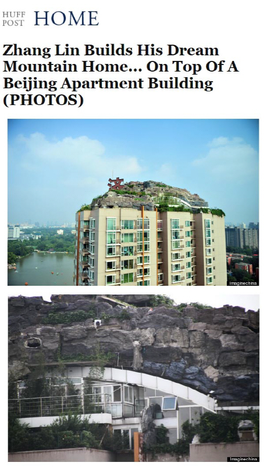 장 교수는 옥상에 대량의 흙을 붓고 풀과 나무도 모자라 바위까지 옮겨와 거대한 산을 지었다.