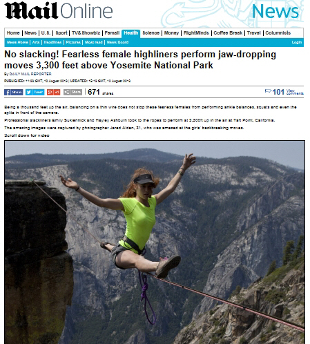 1000미터 상공에서 줄타기하는 간 큰 여성들의 모습이 공개돼 눈길을 끌고 있다.