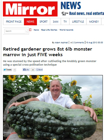 바웰스씨는 "이 호박은 특별하게 빨리 컸다"며 "내가 이제까지 키운 것 중 가장 큰 채소로 아들이 도와줘야 들 수 있다"고 말했다.
