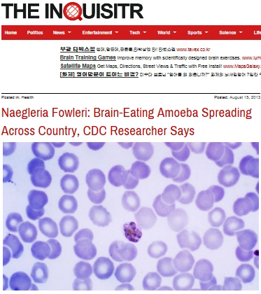 15일(현지시간) 인터넷매체 인쿼지터에 따르면 지난달 미국 아칸소주에서 뇌를 파 먹는 아메바인 '네글레리아 파울러리'에 감염된 12세 소녀에 이어 플로리다주에 거주하는 12세 소년도 감염된 것으로 밝혀졌다.