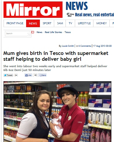 17일(현지시간) 영국매체 미러에 따르면 에식스주에 사는 샤넬 매케이(25)가 출산을 약 2주 앞두고 쇼핑을 하던 중 진통이 시작돼 슈퍼마켓 직원들의 도움을 받아 출산했다.
