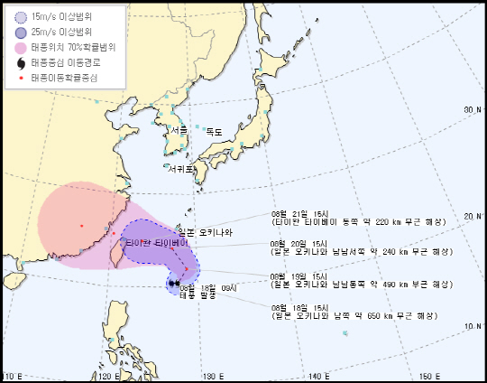 짜미는 현재 시속 3㎞로 동쪽으로 느리게 이동한 뒤 서쪽으로 방향을 틀어 타이완 북쪽으로 이동한 것으로 보여 일단 우리나라에는 영향을 미치지 않을 전망이다. 짜미는 베트남에서 제출한 태풍의 이름으로 장미과에 속하는 나무다.
