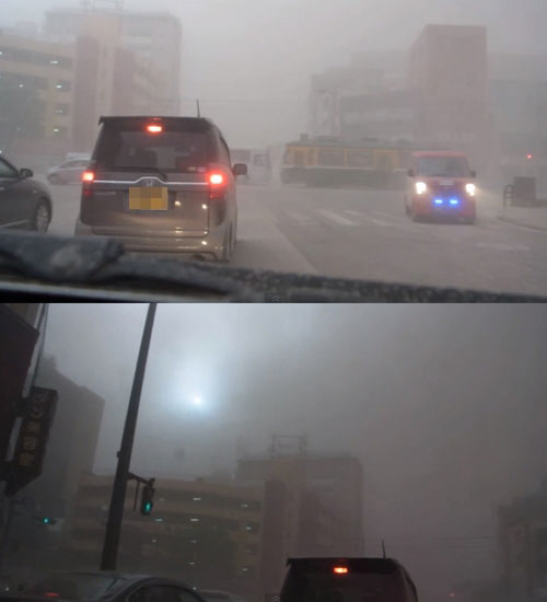 유튜브에는 가고시마 시내 영상을 담은 영상이 공개되고 있다. 영상 속에는 화산재가 가고시마 시내에 마치 눈 처럼 내리고 있는 가운데 차량들이 라이트를 켠 채 주행하고 있는 모습이 담겨 있다. 촬영된 시간이 낮임에도 불구하고 초저녁으로 보일만큼 어두워 보는 이에게 충격을 줬다. 일본 NHK방송 또한 "8월 18일 오후 일본 가고시마 사쿠라지마 쇼와 화구에서 폭발적인 분화가 발생했다"며 "화산재가 5,000m 까지 치솟아 가고시마 시내에 내렸다"고 보도하면서 "화산재로 일부 철도 교통은 중단된 상태다. 화산재로 어두워지자 시내 자동차들은 전조등을 켠 채 주행하고 있다"고 덧붙였다.