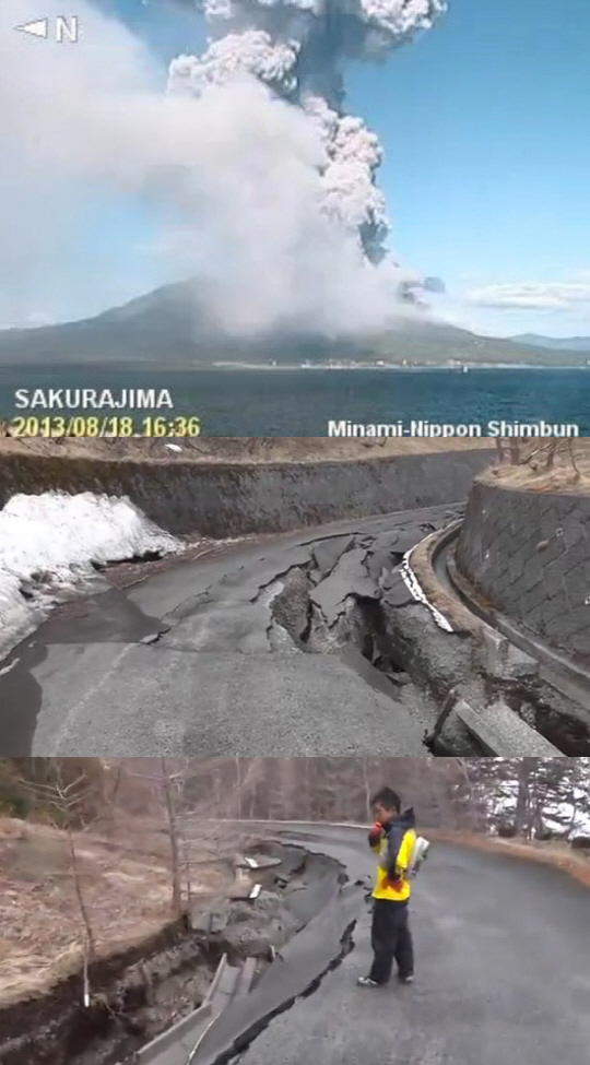 18일 교도 통신은 일본 규슈의 가고시마(鹿兒島)시에서 동쪽으로 4㎞ 떨어진 화산섬 사쿠라지마(櫻島)가 대규모 분화(噴火)를 일으켜 연기가 높이 5000m 상공까지 치솟았다고 보도했다. 화산 분화로 인해 연기가 이렇게 높게 올라간 것은 가고시마 기상대가 관측을 시작한 1955년 이래 처음이라고 전했다.