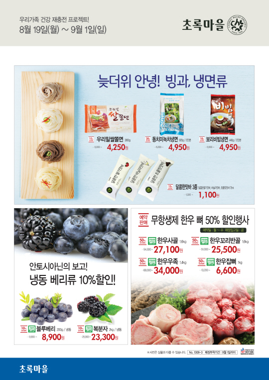 초록마을(대표이사 박용주)이 싱싱 식재료와 함께 바캉스 이후 지친 몸과 마음을 재충전 하기 위한 '냉장고를 채워라' 행사를 9월 1일(일)까지 진행한다.