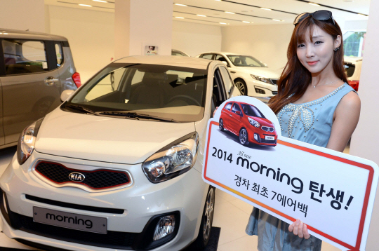 올뉴모닝은 경차 최초로 에어백을 7개 장착한 점이 특징. 운전석·동승석·사이드 등에 들어갔던 기존 에어백 6개에 운전석 무릎 에어백 1개를 새로 추가해 7 에어백 시스템을 적용했다. 충돌시 운전자의 하체를 보호하는 무릎 에어백은 K9 등 고급 세단에 주로 쓰였고 경차에 넣는 것은 처음이다.