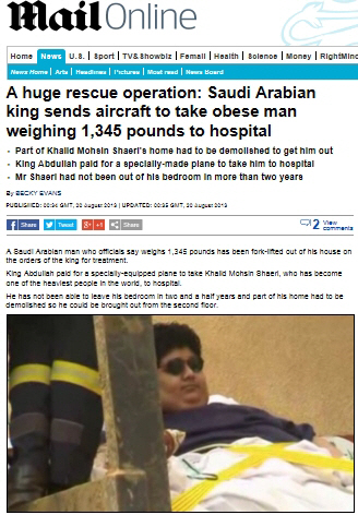 체중이 무려 610kg에 달하는 비만 남성이 압둘라 사우디아라비아 국왕의 도움으로 치료를 받게됐다.