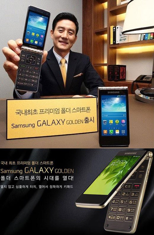 21일 삼성전자는 듀얼 터치 플레이에 키패드가 탑재된 폴더형 스마트폰 '갤럭시 골든(SHV-E400)'을 SK와 KT를 통해 출시한다고 밝혔다.