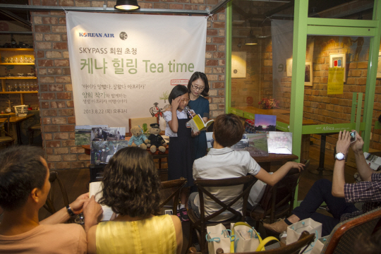 대한항공은 22일 '아웃오브아프리카' 건대점에서 자사 스카이패스 회원을 대상으로 양희 작가와 함께하는 '케냐 힐링 티타임' 행사를 실시했다. 양희 작가는 초등학생 두 아들과 함께 1년 간 아프리카에서 생활하고 돌아와 최근 '아이가 말했다 잘 왔다 아프리카' 책을 발간했다.