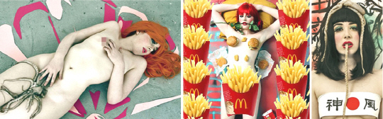 이뿐만아니라 문어를 머리에 올리고 문어다리 하나를 입에 문 채 가슴엔 2차대전때 일본군 자살특공대를 뜻하는 '神風(가미카제)'띠를 두르고 있다.