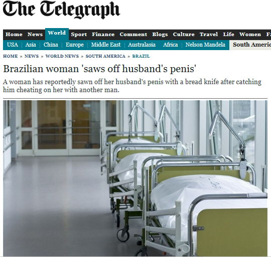 브라질의 한 여성이 바람을 피운 남편의 성기를 칼로 자른 충격적인 소식이 전해졌다.