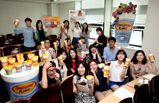 글로벌 No.1 오리지널 스무디 브랜드 스무디킹(대표 김성완)이 방학 중에도 취업 준비로 바쁜 대학생들을 직접 찾아가 신제품 '퓨어 에너지 스무디'로 지친 에너지를 충전해주는 '퓨어 에너지 어택'을 진행했다.