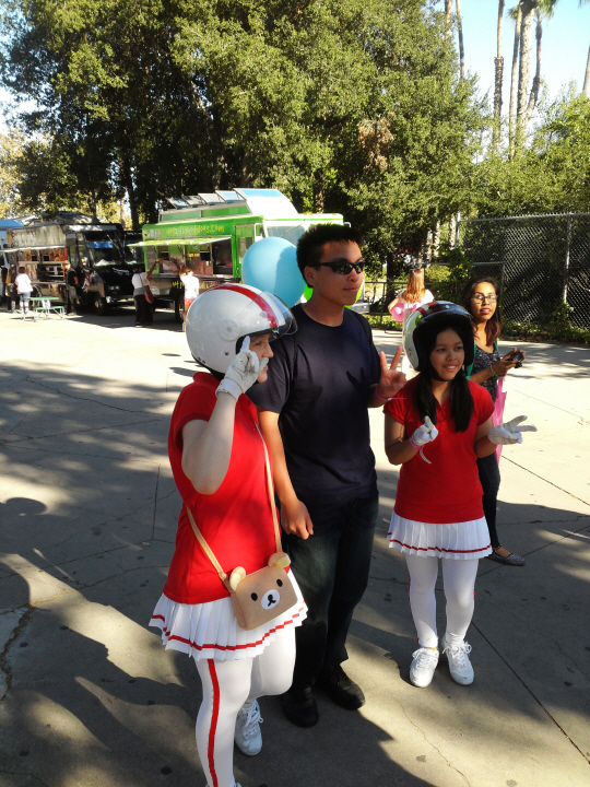 두 명의 미국 소녀는 요즘 한국에서 큰 인기를 모으고 있는 걸그룹 크레용팝을 흉내내고 행사장을 활보했다. 크레용팝의 헬멧과 독특한 유니폼이 눈길을 끌었다. 이들을 보고 또 다른 미국인은 기념사진 촬영을 요청하기도 했다.