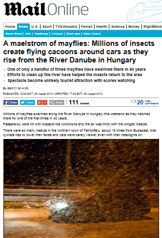 한 곤충전문가는 "다뉴브강이 깨끗해지면서 하루살이떼가 모여든 것 같다"며 "이날 모습은 죽기전 번식을 위해 몇시간동안 짝을 찾는 장면"이라고 설명했다. 현재 이곳은 새로운 관광지로 부상해 사람들의 발길이 이어지고 있는 것으로 알려졌다.