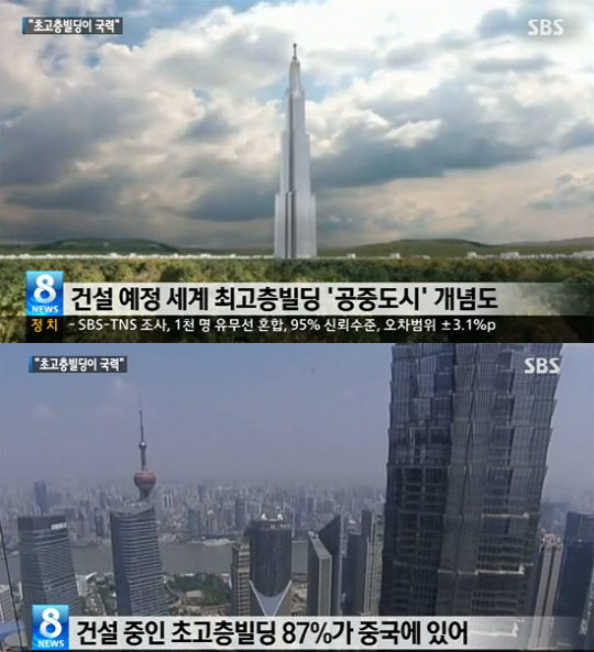 이와 관련, 현재 중국의 무서운 성장세를 상징하듯 전 세계에 지어지고 있는 초고층빌딩의 87%가 중국에서 건설 중이다.