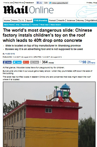 중국의 한 건물에 '죽음의 미끄럼틀'이 설치됐다는 보도가 나와 화제다.