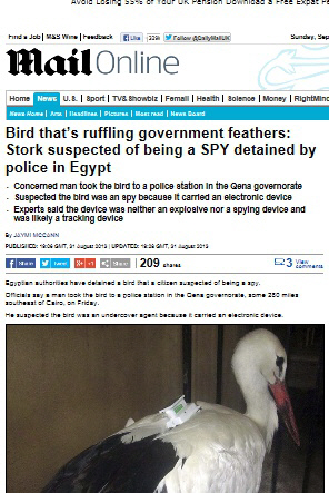 황새 한 마리가 간첩 혐의로 붙잡혀 철창 신세를 졌다.