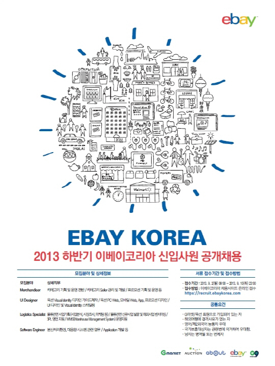 이베이코리아 관계자는 "온라인 쇼핑 수요와 시장이 크게 확대된 요즘, 이번 공채를 통해 온라인 시장을 함께 이끌어갈 글로벌 인재들을 발굴할 계획"이라며 "최신 트렌드에 민감하고 적극적인 인재들의 관심과 지원을 바란다"고 말했다.