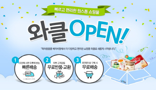 김범석 대표는 "쿠팡은 서비스의 형태에 구애 받지 않고 고객에게 최상의 이커머스 쇼핑 경험을 제공하는데 중점을 두고 있다"며 "이를 위해 상품 선별, 물류, CS, 정보인프라 등 다양한 분야에 공격적으로 투자하며 최상의 쇼핑 환경을 구축해 나갈 계획"이라고 말했다. 한편, 와클은 서비스 오픈을 기념한 다양한 이벤트를 선보인다. 하루에 한가지 육아용품을 획기적인 가격에 선보이는 '원데이 원딜 초특가 이벤트'를 오는 12일까지 진행하며, 와클에서의 첫 구매 상품이 '기저귀'일 경우, 1인당 1팩을 1만원에 제공한다.