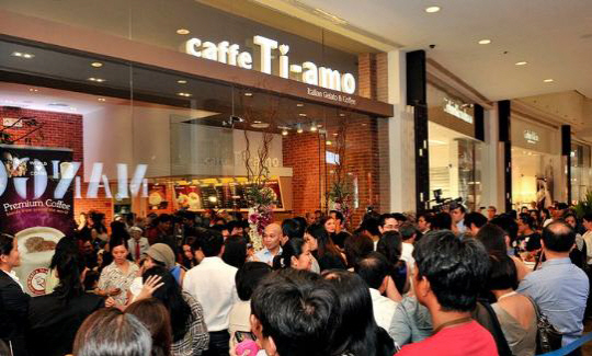 젤라또&커피전문점 '카페 띠아모'는 2006년 1호점을 오픈하기 전부터 세계 진출을 고려했다. 이미 필리핀, 중국, 몽골, 캄보디아 등에 매장을 오픈, 운영중이다. 지난 2010년 12월 오픈한 3번째 해외 매장 필리핀 그린벨트몰점 오픈식 때는 미국 CNN 방송도 취재할 정도로 열기가 뜨거웠다. 그랜벨트몰점은 한화로 일매출 120만원 이상을 기록할 정도로 인기를 얻었다.