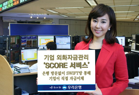 우리은행(은행장 이순우)이 국내 은행으로는 최초로 기업이 직접 국제은행간 자금결제 시스템인 SWIFT망을 통해 해외로 자금이체를 지시하고, 해외에서 입금된 송금내역을 바로 수신할 수 있는 외화자금 관리서비스인 'SCORE (Standardized Corporate Environment) 서비스'를 6일부터 실시한다.