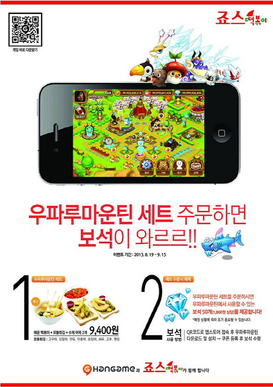 죠스떡볶이 전략기획실 김동윤 부장은 "떡볶이·치킨 등 인기 간식과 게임은 사람들이 주로 여가 시간에 찾게 되는 대상이라는 공통점이 있다"면서, "주고객층과 여가 시간을 공통분모로 온라인과 오프라인을 연계한다는 점에서 양자간 공동 프로모션의 효과는 클 수밖에 없다"고 말했다.
