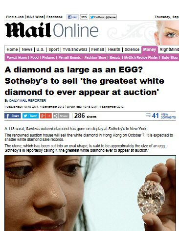 계란만한 크기의 다이아몬드가 경매에 나올 예정으로 알려져 화제다.