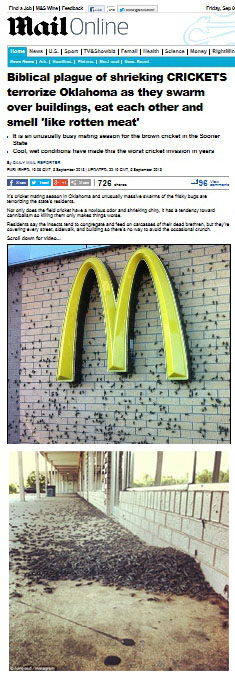 이처럼 귀뚜라미떼가 기승을 부리는 것에 대해 오클라호마주립대 곤충학자들은 여름 가뭄과 홍수가 겹치면서 귀뚜라미 개체 수가 급격히 증가했다고 분석했다.
