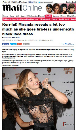 세계적인 톱모델 미란다 커(30)의 상반신이 순식간에 노출되는 사고가 발생했다.