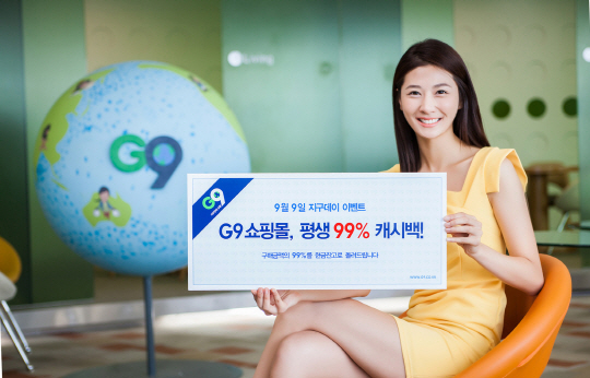 G9는 9월9일 단 하루 동안 '평생 99% 캐시백' 이벤트를 열고, 쇼핑 비용의 99%를 현금잔고로 돌려받을 수 있는 행운의 주인공을 뽑는다. 행운의 주인공에게는 제품 구매비용의 99%를 매월 최대 100만원을 현금잔고로 지급한다. 가령 100만원짜리 상품을 구매하면 99만원을 현금잔고로 지급해 주는 식이다. 특히 이 같은 혜택을 평생 동안 보장한다는 점에서 파격적이다. 평생의 기준은 당첨자가 한국인의 평균수명인 81세가 되는 해의 12월31일까지이다. 결국 행운의 주인공은 81세까지 매달 100만원씩의 쇼핑 지원금을 받는 셈이다.