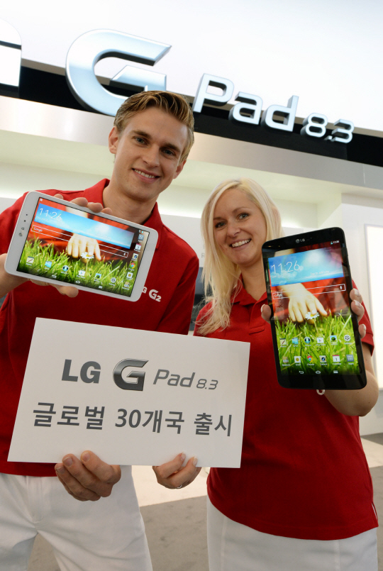 LG전자가 연말까지 세계 30개 국가에서 G시리즈 첫 태블릿 'LG G Pad 8.3'을 판매한다. LG전자는 다음달 한국을 시작으로 북미, 유럽, 중남미, 아시아, CIS, 아프리카 등에 순차적으로 출시할 예정.