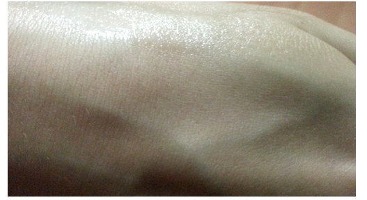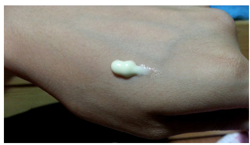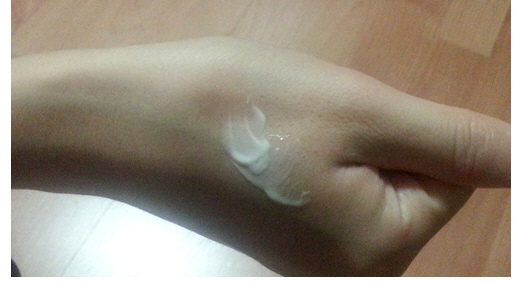 손에 살짝 바른 상태. 은은한 박하향이 살짝 돌면서 상쾌함을 더해준다.